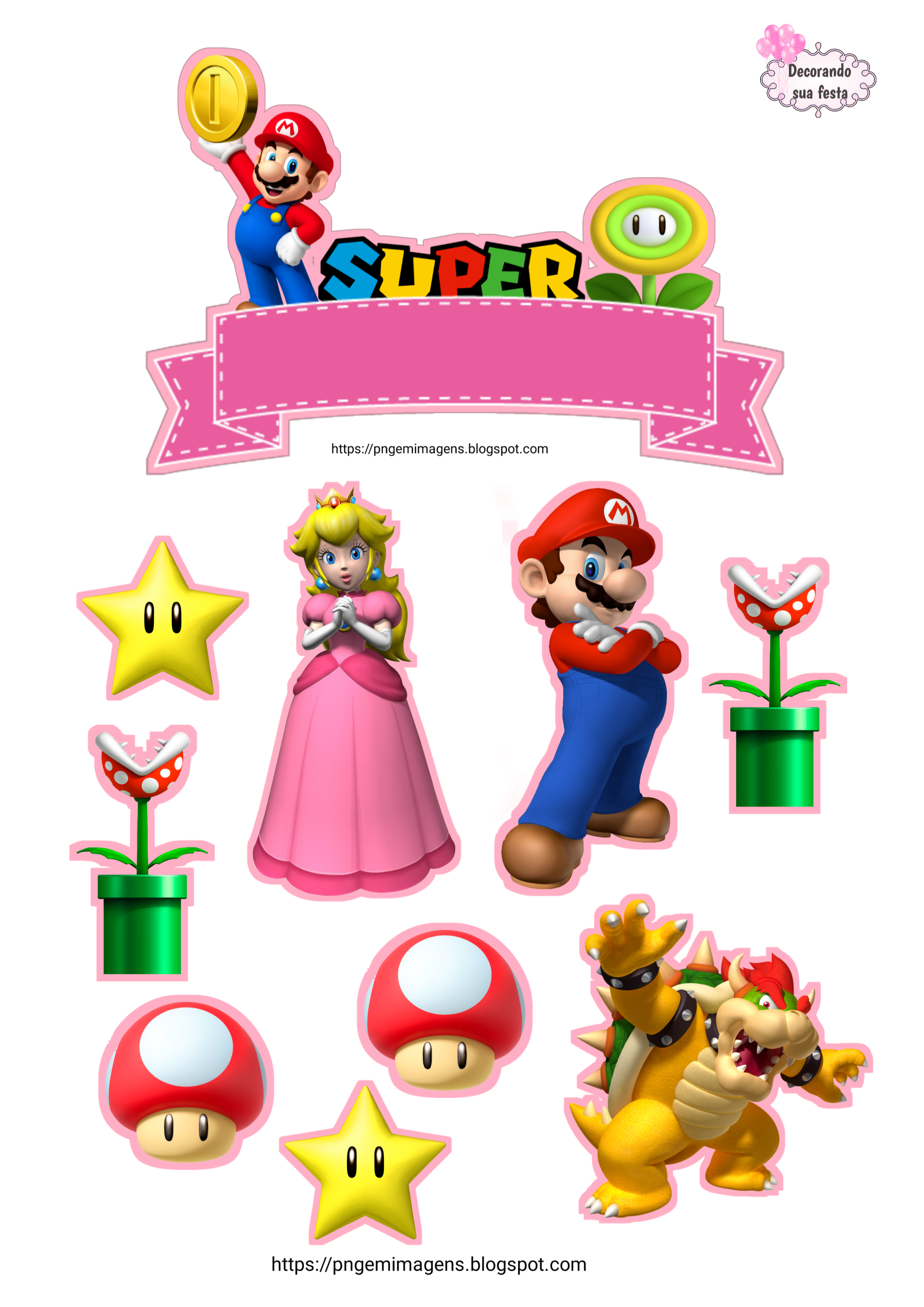 Topo de Bolo super Mario | PARA IMPRIMIR GRATIS